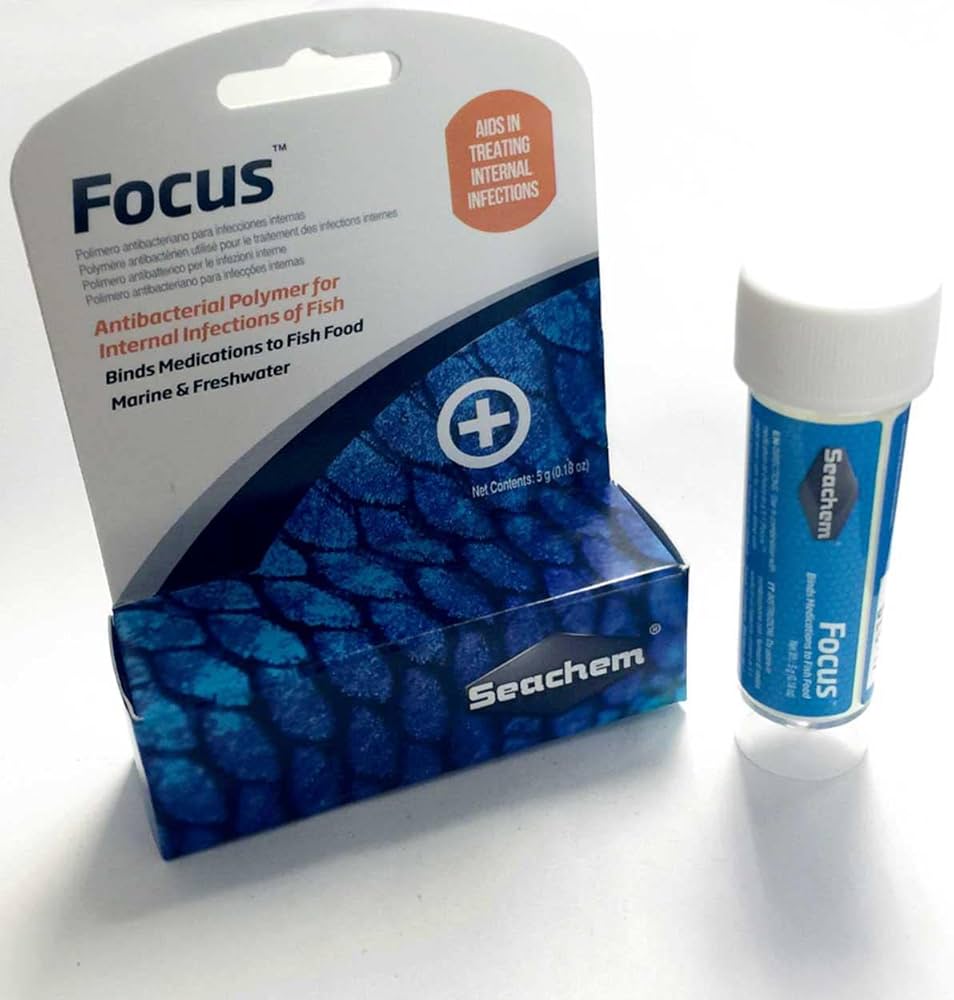 Seachem Focus™ is a specialized antibacterial polymer designed to treat internal infections in fish by binding medications directly to their food. Its active ingredient, polymer-bound nitrofurantoin (0.1%), effectively treats internal bacterial and fungal infections while preventing the medication from diffusing into the water column. By delivering treatment straight to the fish's digestive system, Focus™ is the ideal solution for treating sick fish in reef or planted aquariums where sensitive invertebrates and plants would otherwise be harmed by broadcast water treatments.